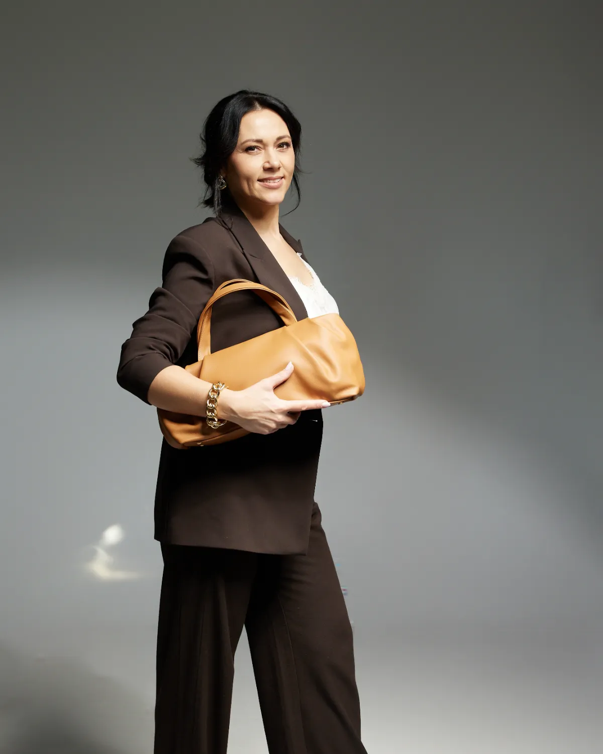 Ciepła, świetlista i niezwykle kobieca. Torebka MENDI Karmelowa Skóra Gładka to dodatek, który przyciąga spojrzenia i budzi pożądanie. Jej piękny, jasnobrązowy odcień idealnie komponuje się ze złotą biżuterią i jasnymi stylizacjami, dodając im lekkości oraz wyrafinowania. To model dla kobiety, która chce czuć się wyjątkowo, nie rezygnując z codziennej funkcjonalności.