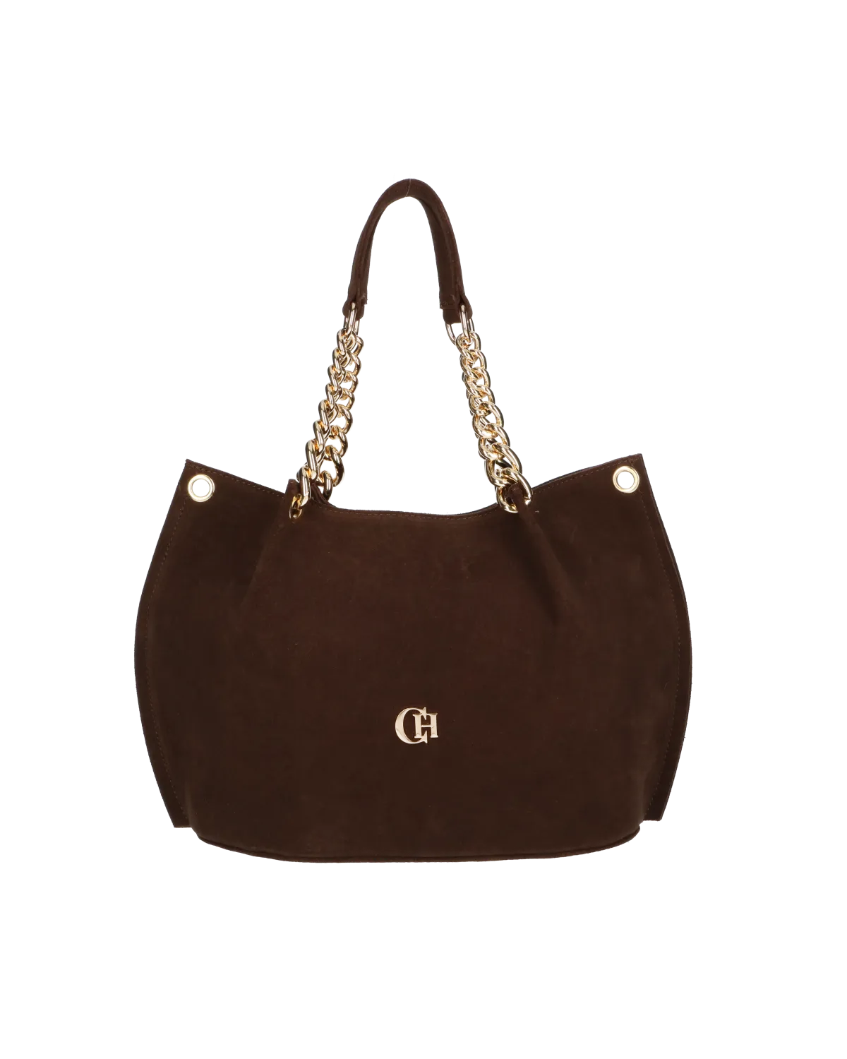 Torebka Klasyczna NESCA MAX Czekoladowy Zamsz to esencja jesiennej elegancji. Wykonana z aksamitnego, włoskiego zamszu w głębokim odcieniu gorzkiej czekolady, zachwyca miękkością i surowym, naturalnym wykończeniem wnętrza. Idealna na co dzień, pojemna i ozdobiona złotymi detalami, które dodają jej prestiżu.